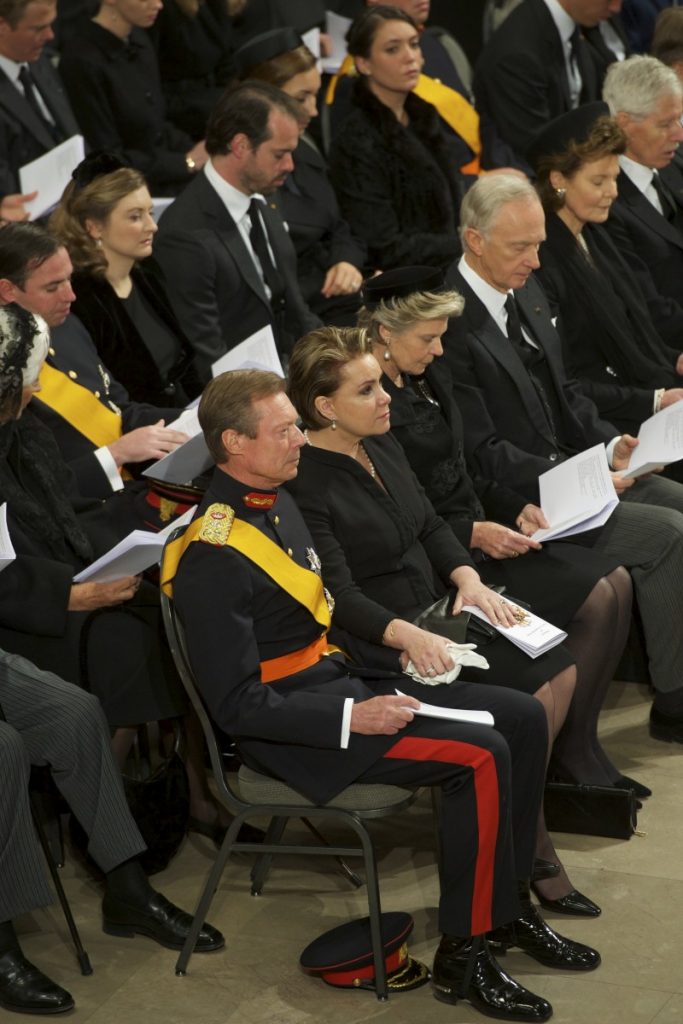 Hinter dem Sarg erscheinen Großherzog Henri und Großherzogin Maria Teresa. Henri, der seinen Vater an diesem Tag verabschiedet, blickt ernst. Sein Schritt scheint etwas zittrig, seine Stirn ist in Falten gelegt. Seine Frau hält seine Hand. Hinter ihnen Erbgroßherzog Guillaume, Erbgroßherzogin Stéphanie und die weiteren Angehörigen der großherzoglichen Familie.