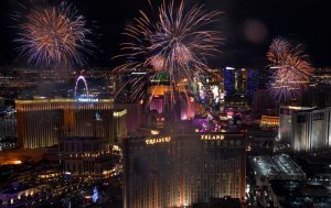 USA, Las Vegas: Feuerwerk über dem Las Vegas Strip während einer Neujahrsfeier