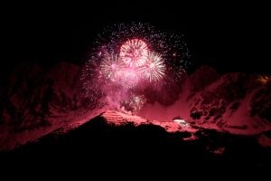 Ein Feuerwerk erhellt den Himmel während der Neujahrsfeierlichkeiten auf der Nordkette in Innsbruck