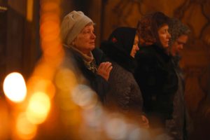 Ukraine, Kiew: Menschen beten an Silvester in einer Kirche inmitten anhaltender russischer Raketenangriffe. Kurz vor und auch nach dem Jahreswechsel haben russische Drohnen erneut das Land angegriffen.