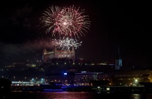 Slowakei, Bratislava: Feuerwerk über dem Himmel von Bratislava