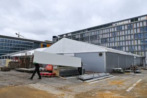 Doch das wird sich schon bald ändern: In rund 2,5 Kilometern Entfernung zu dem Messegelände wurde in der Umgegend der „Coque“ in der rue Tony Rollman eine provisorische „Structure de primo-accueil“ errichtet. Denn wegen „anderer Verpflichtungen“ – wie Jean Asselborn es bei der Pressekonferenz formulierte – war von vorneherein festgelegt worden, dass das Messegelände dem „Office national de l’accueil“ (ONA) nur bis April zur Verfügung stehen würde. Deshalb waren am Wochenende rund 100 Feuerwehrleute aus dem ganzen Land auf Kirchberg im Einsatz, um in Halle 7 der Luxexpo Betten und Zelte abzubauen und diese anschließend auf dem Gelände der neuen Struktur wieder aufzubauen.
