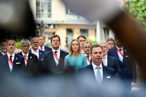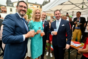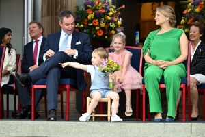 Und trotzdem gibt es immer wieder kleinere Überraschungen. So auch am Donnerstag. Erbgroßherzog Guillaume kam mit ein paar Minuten Verspätung am Brillplatz an, weil er zuvor seine Gattin Stéphanie und Sohn Charles am Rathaus abgeliefert hatte. Der Marsch durch die längste Einkaufsstraße des Landes war ein wenig zu lang für den dreijährigen Thronfolger der Nassauer und so musste sein Vater Guillaume auf dem Weg zum Rathausplatz so manche Frage zum Verbleib seiner Gattin und des erstgeborenen Sohnes beantworten. Beide waren wohlauf und warteten auf der Tribüne vor dem Rathaus auf Guillaume, während der vor drei Monaten geborene Bruder von Charles, François, zu Hause geblieben war.
