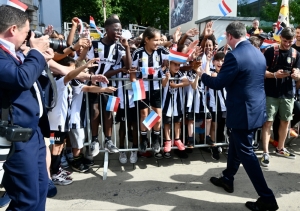 An den Daheimgebliebenen wurde dennoch gedacht. So war der erste Stopp des Erbgroßherzogs gleich zu Beginn der Alzettestraße, wo sich die Kinder der „Butzeneck-Crèche“ versammelt hatten. Sie hatten in den letzten Wochen Geschenke gebastelt und übergaben Guillaume ein Puzzle für Prinz Charles und ein Lätzchen für Prinz François. Natürlich in den Landesfarben Rot-Weiß-Blau. Zuvor war die von den Ministern Taina Bofferding, Joëlle Welfring, Georges Engel und Max Hahn angeführte Prozession an der Brillschule stehen geblieben, wo Chamber-Vizepräsident Mars di Bartolomeo dem versammelten Nachwuchs von Fußball-Rekordmeister Jeunesse Esch eine kleine Freude bereitete. Er bezeichnete den Verein als besten Fußballclub des Landes. Eine Ehre, die sich die Jeunesse allerdings mit dem F91 aus di Bartolomeos Heimatstadt Düdelingen teilen müsse, so der LSAP-Politiker augenzwinkernd.