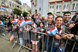 Der Star des Abends war aber zweifellos Thronfolger Charles, der kurz zuvor auf seinem kleinen Stuhl auf der Ehrentribüne sichtlich Freude am Aufmarsch der Escher Klubs hatte. Vor allem, als sich die Pfadfinder-Vereine präsentierten und von seinem Vater Guillaume mit dem Pfadfindergruß empfangen wurden.