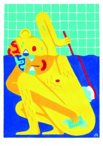 Dabei hat Dirk Kesseler eigentlich nie Illustration im Blick gehabt. Nach seinem Schulabschluss hatte er zwar „keinen Plan“, dachte aber eher an freie Kunst, Design oder Schauspiel – in seiner „Lycée“-Zeit war er Mitglied der Escher Schülertheatergruppen Namasté und Geoghelli. Doch all das passte nicht wirklich, engte ihn zu sehr ein. An der freien Kunst zum Beispiel stört ihn damals wie heute die ganze Ernsthaftigkeit: „Humor kann man sich da erst erlauben, wenn man bis bekannt genug ist, um sich keine Gedanken mehr darüber zu machen, ernst genommen zu werden.“ Anders so in der Disziplin, in die er durch puren Zufall gestolpert ist. Hier sei alles möglich.