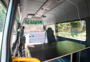Neben dem Night-Rider-Bus setzt der Transport- und Reiseunternehmer Sales-Lentz aus Niederkerschen zurzeit auch auf etwas ausgefallenere Ideen. Mit dem sogenannten „Parloir mobile“ zum Beispiel können Engpässe in den Besuchsstrukturen in Pflegeheimen ausgeglichen werden. In diesem umgebauten Bus können sich Familien unter Wahrung aller Schutzmaßnahmen mit Angehörigen treffen, die in einem Heim untergebracht sind. Anders als der Name es vielleicht anklingen lässt, ist diese Struktur aber nicht für einen gemeinsamen Ausflug geeignet. Der Bus muss von der Betreuungseinrichtung angefragt werden und wird dann für den gewünschten Zeitraum zur Verfügung gestellt. Ohne Chauffeur, denn gefahren werden darf damit nicht.