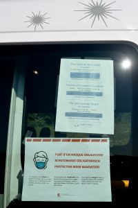 Abgesehen von den angepassten Uhrzeiten und davon, dass im Bus obligatorisch eine Maske während der ganzen Fahrt getragen werden muss, läuft aber alles eigentlich wie immer ab. Alle Busse und alle Fahrer sind bereit. Auch die Anzahl der Gäste im Bus ist unverändert. „Es ist vom Prinzip her wie im normalen öffentlichen Transport“, so Claude Wolff. Das heißt, es gibt keine Abstandsregeln oder Desinfektionsmittelspender. „Es ist auch von Regierungsseite nicht vorgesehen, also es gibt keine Vorschrift oder Empfehlung, den Bus nach einer Fahrt zu desinfizieren. Das ist übrigens auch beim öffentlichen Transport so und beim Schultransport.“