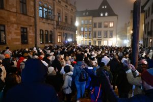 Frankreichs umstrittener Kritiker der offiziellen Covid-19-Politik hat es ins Zentrum der Luxemburger Politik geschafft. Der falsche Raoult ist es, der an diesem Abend für Stimmung vor der Chamber sorgt und damit für etwas Struktur in dieser doch recht orientierungslos anmutenden Menschenansammlung. „Liberté“, „Touchez pas à nos enfants“, „Tous ensemble“ gibt er die Losungen vor. Die Menge greift sie bereitwillig auf, klatscht begeistert mit.