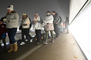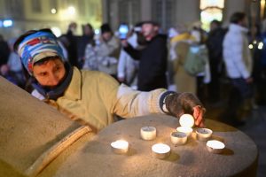 Endstation auch dieses fünften Schweigemarsches ist der Knuedler. Doch anders als vor zwei Wochen ist es ruhiger. Die Temperaturen um den Gefrierpunkt hinterlassen wohl ihre Spuren.