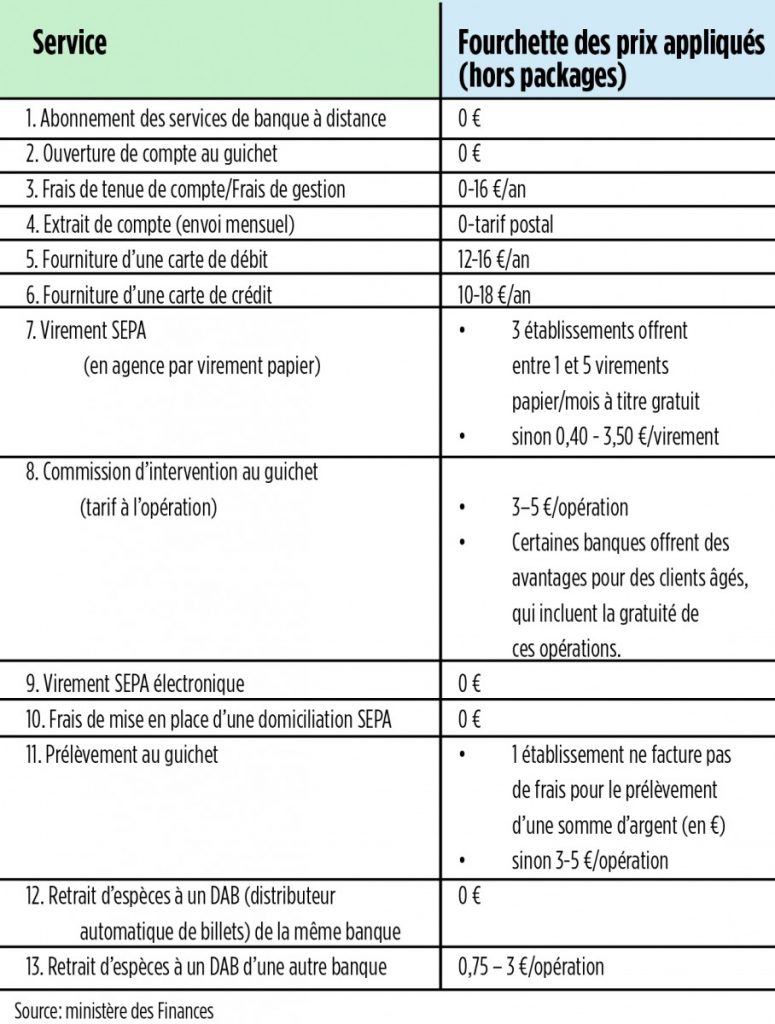 Doch damit eine echte Debatte über die vielfältige und undurchsichtige Kostenstruktur für die Kunden überhaupt möglich wird, hat Finanzminister Pierre Gramegna Vertreter der größten luxemburgischen Schalterbanken zu einem Gespräch über Gebühren geladen. Es waren dies die Raiffeisen, die BCEE, die BGL BNP Paribas, die BIL und die Luxemburger Post. All diese Banken verfügen über jeweils mehr als 25 Filialen im Lande. Das Ergebnis dieser Unterhaltungen hat das Finanzministerium nun in Form der nebenstehenden Tabelle veröffentlicht. Dabei weist das Ministerium darauf hin, dass «Package-Angebote» nicht mit in Betracht gezogen wurden.