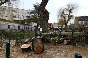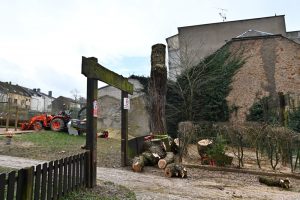 Vergangene Woche gab es nun die ersten Vorboten der Bauarbeiten, die im Juni so richtig beginnen sollen. Sie sorgten bei der Bevölkerung und in den sozialen Netzwerken für Aufregung, da die hier am Kinderspielplatz stehenden, zum Teil bis zu 60 Jahre alten Bäume (in erster Linie Weiden), dem Projekt weichen mussten und radikal abgeholzt wurden. Dabei hatte der schwarz-grüne Schöffenrat vor eineinhalb Jahren noch der Hoffnung Ausdruck gegeben, die Bäume könnten vielleicht gerettet und verpflanzt werden. Doch diese Hoffnung zerschlug sich offenbar, sodass sich den Passanten momentan ein eher trauriger Anblick an der avenue de la Libération auf Höhe der Eisenbahnunterführung bietet. Lediglich ein Baum steht noch vor Ort.