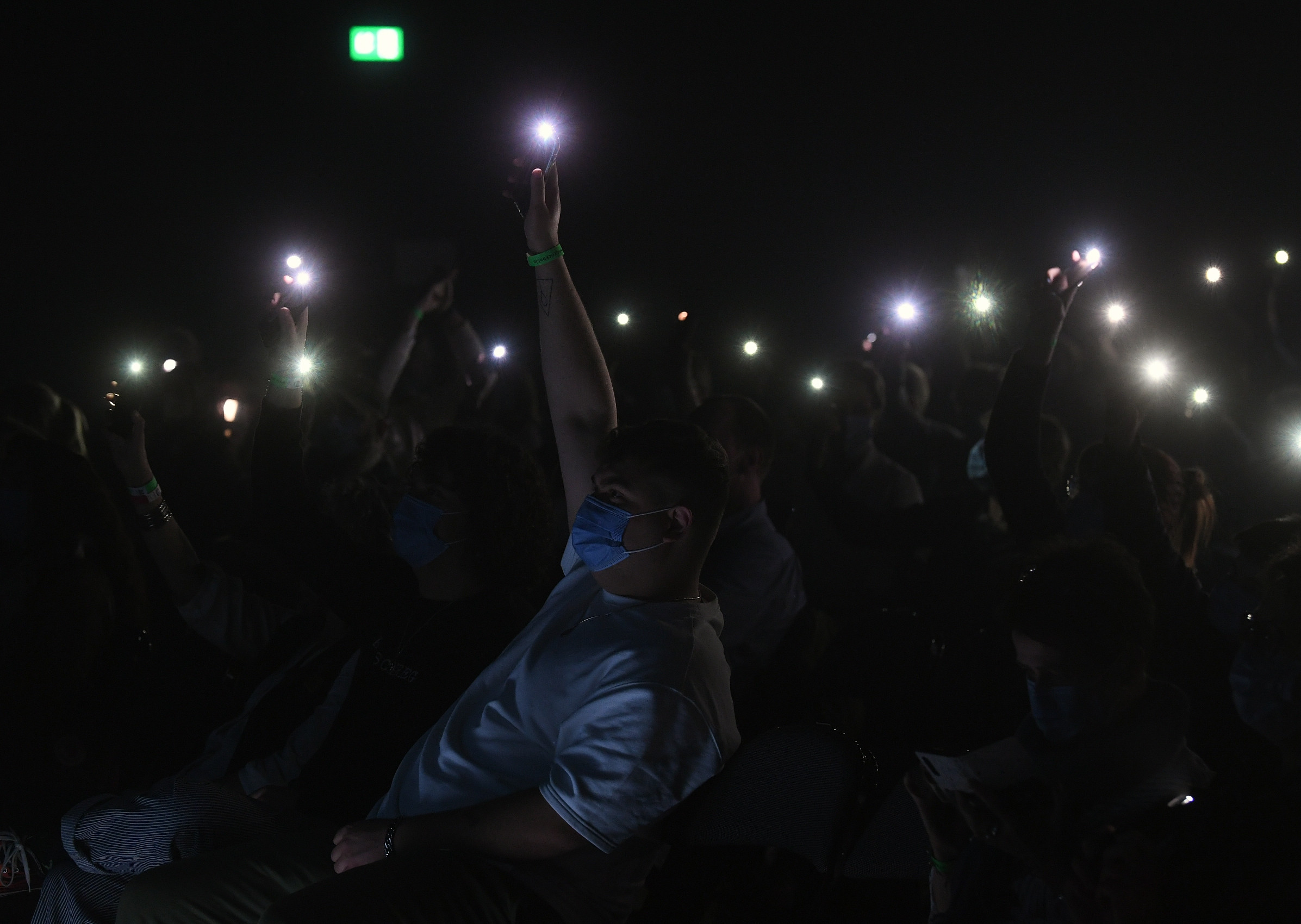 Während die einen noch schnell ins Testzentrum in Belval eilten, tummelten sich die anderen bereits vor dem Eingang der Konzerthalle und warteten ungeduldig darauf, dass sich die Türen der Rockhal öffneten. Trotz der strengen sanitären Maßnahmen war die Stimmung vor Ort sehr gelassen – die Vorfreude auf das erste größere Live-Konzert seit Monaten war sichtlich zu spüren.