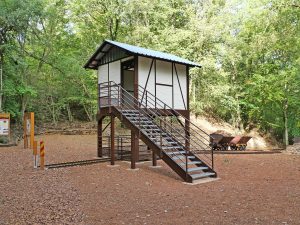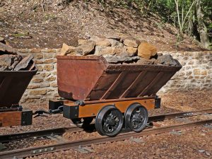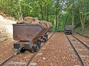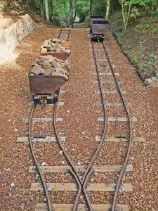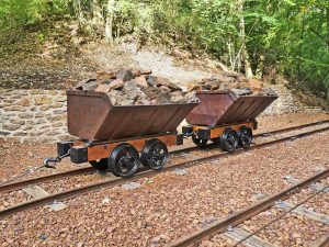 Oberhalb von Tetingen stehen mitten im Walde vier Minettebuggies, die an einem Drahtseil hängen, auf Schmalspurschienen. Darüber thront ein merkwürdiges Häuschen, das auf Stelzen steht. Und das alles sieht aus wie neu. Da wird wohl so mancher Wanderer sich fragen, was denn nun wohl Sinn und Zweck von dem ganzen Zeug sein möge?