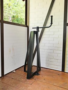 Nun wären aber die mit über zwei Tonnen Eisenerz beladenen Waggons bergab unrettbar davongelaufen, wenn man sie nicht gebremst hätte: Und gebremst wurden sie von einem Häuschen an der Bergstation der Seilbahn aus, von wo ein Arbeiter die Buggys unter Kontrolle behielt. Die Bremse funktionierte mit einem Mechanismus, der jenem der Handbremsen auf alten Eisenbahnfahrzeugen ähnelte: Der Bergmann drehte an einer Kurbel, welche über eine Gewindespindel mehrere Holzklötze an die Umlenkrolle presste, über welche das Förderseil lief. Der Arbeiter überblickte dabei von seiner überhöhten Kabine aus die gesamte Anlage bis ins Tal hinab.