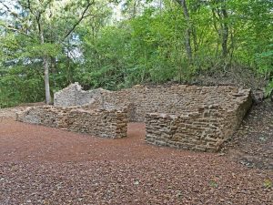 An besagtem Parkplatz befindet sich zudem rechterhand ein alter Erzverladekai, an dem früher die Minette, die vom Bremsberg kam, in die normalspurige Bahn umgeladen wurde. Die Gemeinde hat diese Szene nachstellen lassen, indem oben auf dem Kai ein paar Buggys aufgestellt wurden, während darunter eine alte CFL-Rangierlok vor einem Güterwagen steht.