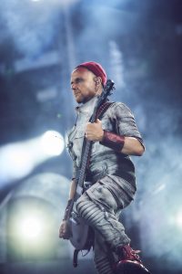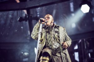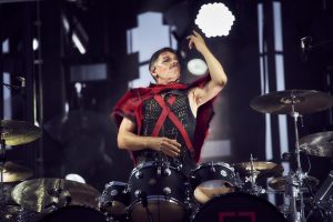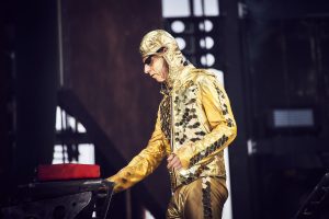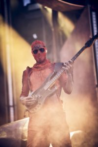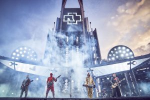 Jeff Schinker: Zumal die Schlauchboot-Episode – die Musiker gleiten, von den Zuschauern getragen, von der Inselbühne in der Mitte der Konzertwiese zur Hauptbühne, wo Lindemann sie mit einem „Willkommen“-Schild begrüßt – auch als deutliche Botschaft in der anhaltenden Debatte über die Aufnahme von Geflüchteten gelesen werden kann. Zugeben muss ich es: Ein Gespür für Dramaturgie hat die Band definitiv, auch wenn manches redundant ist und all dies für Menschen, die oft im Theater sind, etwas hölzern daherkommt. Die Schlauchboote, die akustische Version von „Engel“, das schwebende DJ-Mischpult für den „Deutschland“-Remix, der überdimensionierte Kinderwagen bei „Puppe“ – bei all dem Abwechslungsreichtum merkt man sogar kaum mehr, dass sich bei den Songs, die vom neuen Album gespielt wurden, einige vergleichsweise schwächere Stücke eingeschlichen haben – und dass nach 22 Tracks in meinen Augen die Rammstein-Formel mit ihren stampfenden Industrial-Riffs, den Synthies und Tills Schauermärchenonkel-Texten etwas ausgenutzt wirkt.
