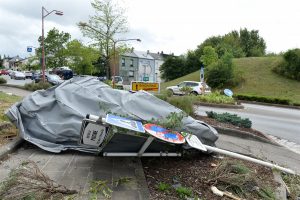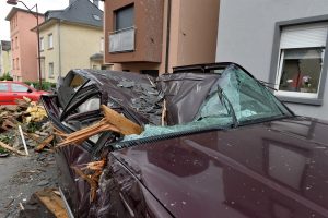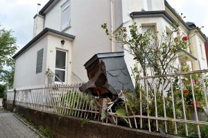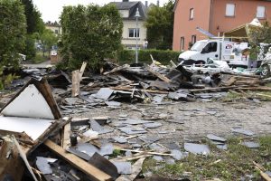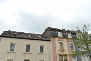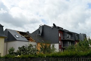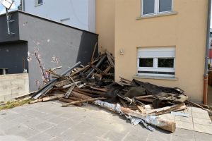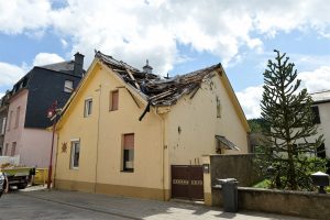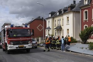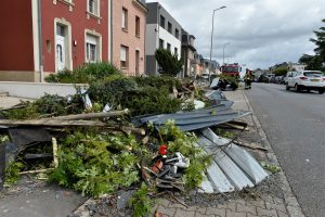 Max Penné ist Trainer der Cadets beim Verein UN Käerjeng und kickte mit seinen Spielern auf dem Fußballplatz, als sich dunkle Wolken am Horizont bildeten. «Plötzlich wurde es überall schwarz, Objekte flogen durch die Gegend», schildert er. Das war gegen 17.40 Uhr, als das Wetter im Anzug war. Penné brach das Training umgehend ab und auch die für den restlichen Abend vorgesehenen Einheiten wurden abgesagt. Der Schaden für den Verein ist riesig. «Die Dächer der Sporthalle und des Kulturhauses ‚Käerjenger Treff‘ sind völlig zerstört», berichtet Penné. «Auch ein Lichtmast fiel in der Nähe des Rasens um.»