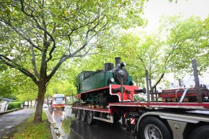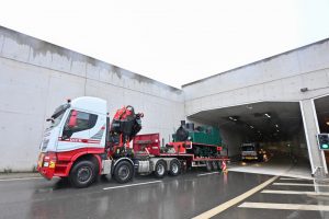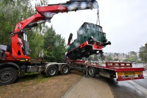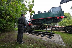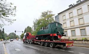 Am Samstag um Punkt 10.48 Uhr war es vollbracht: Zwei Lastwagen einer spezialisierten Firma aus Belgien hatten die Hanomag-Dampflokomotive, die letzte ihrer Art in Luxemburg, an ihren alten Standort am Escher „Schlassgoart“ abgestellt. Dort erstrahlt sie nun in neuem Glanz. Im April 2021 hatte dieselbe Firma die durchgerostete Lok abgeholt und in die Hangars in der rue de Belval gebracht, wo sie Mitarbeiter der Beschäftigungsinitiative ProActif restaurierten.