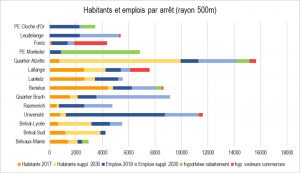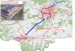 Am Mittwochabend wurde die Frage beantwortet, wie der Grenzverkehr in das Ganze eingebunden werden soll. Bis 2035 soll die Bevölkerung im „Haut Val d’Alzette“ um 80 Prozent auf dann 36.500 Einwohner ansteigen. „Die Idee ist, die Grenzgänger dort abzuholen, wo sie wohnen, und sie dann quasi reibungslos zu den Schienen zu bringen“, so François Bausch („déi gréng“), Minister für Mobilität und öffentliche Bauten. Für den BHNS wird ein Korridor von Audun-le-Tiche zu den Knotenpunkten Esch-Bahnhof, dem neuen Stadtviertel „Quartier Alzette“ (vormals Arbed Esch-Schifflingen) bis hin zum Monkeler geschaffen. Im „Quartier Alzette“ befindet sich dann auch der Anschluss zur Straßenbahnverbindung in die Hauptstadt. Der Korridor verläuft von Audun über die jetzige Zugverbindung in Richtung Esch. Die sei laut Bausch nicht mehr zeitgemäß und außerdem wenig genutzt. Während der Zug dort momentan im 30-Minuten-Takt verkehrt, ist für den BHNS ein 5-Minuten-Rhythmus vorgesehen. Der Bahnübergang in der „Hiehl“ verschwindet, was laut Eschs Bürgermeister Georges Mischo zu einer Aufwertung des Stadtviertels führen werde. Zudem entsteht in unmittelbarer Nähe das neue Viertel „Rout Lëns“.