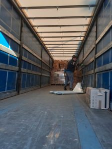 12.00 Uhr: Fertig. Der Frachtraum ist voll. Fahrer Yaroslav ist hundemüde, schließlich ist er seit Freitagnachmittag 14.00 Uhr unterwegs. Das sind 54 Stunden insgesamt. Da er Reservist ist, gab es schon lange Wartezeiten an der Grenze zwischen Ukraine und Polen. „Die Regeln hatten sich gerade wieder geändert“, sagt der Lkw-Fahrer, der sonst in den Niederlanden, Tschechien, Deutschland, Polen oder der Ukraine selbst unterwegs ist. Er muss schlafen, essen, duschen. Olga und ihr Mann nehmen ihn nach Luxemburg mit.