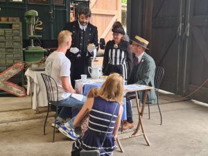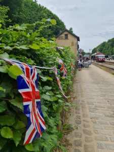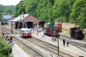 Im Fond-de-Gras, bei blauem Himmel und Sonnenschein – einer Wetterlage, von der die Briten oft nur träumen –, dominierte ein angelsächsisches Ambiente. Mit dem historischen Fuhrpark des Minettpark und der „Association des musée et tourisme ferroviaires asbl.“ konnten die zahlreichen Besucher Sonderfahrten zwischen dem Bahnhof Petingen und dem Fond-de-Gras genießen. Special Guest war die charmante Stehkessellokomotive „Cockerill 503“. Die Zugmaschine aus dem Jahre 1920 stammt aus dem belgischen Werk Cockerill-Sambre, ein Werk, das 1825 vom britischen Industriellen John Cockerill gegründet wurde.