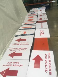 Wo sonst Menschen hereinströmen, um sich auf einer Messe umzuschauen, herrscht am Montagmittag Leere. Schilder warnen am Haupteingang der Luxexpo The Box. Draußen auf dem Parkplatz fahren hauptsächlich Armee- und Polizeiwagen ab oder kommen gerade zurück. Ein paar Freiwillige hasten die Treppe in Richtung Glastüren hoch, um die Mittagsschicht, die um 13.30 Uhr beginnt, anzutreten.