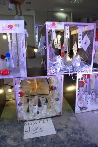 Tradition am „Escher Krëschtmoart“ war die Gestaltung der Eingangspforte durch die Grundschulkinder der Stadt. Aus wiederverwerteten Materialien machten die Klassen der unterschiedlichen Primärschulen kleine Kunstwerke, die später prämiert wurden. Auf diese schon zur Tradition gewordene Aktion wollte man im Corona-Jahr 2020 nicht verzichten. Die Bastelarbeiten der Schüler sind nun im „Centre Mercure“ ausgestellt. Überhaupt ist die Einkaufspassage mit ihrer Dekoration so etwas wie ein vorweihnachtliches Zentrum Eschs.