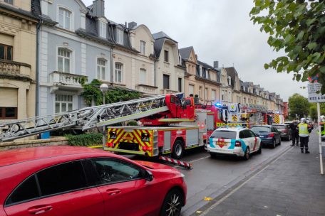 Aufregung am frühen Samstagmorgen in der Escher Spitalstraße: Die Bewohner des Hauses Nummer 8 gegenüber des LGE wurden im Schlaf von einem Dachstuhlbrand überrascht. Sie konnten das Gebäude zeitig verlassen, sodass kein Mensch zu Schaden kam. Die Feuerwehr war mit vier Löschwagen vor Ort und hatte den Brand schnell unter Kontrolle. Dem Vernehmen nach könnte das Feuer von einer Solaranlage auf dem Dach ausgelöst worden sein. Bürgermeister Georges Mischo machte sich vor Ort ein Bild von der Lage. Ob die Bewohner am Samstag in ihr Haus zurückkehren konnten, war am Morgen noch unklar.