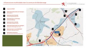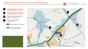 In Steinbrücken entsteht ein ganz neuer Autobahnzubringer, für den das Finanzierungsgesetz fertig ist. Er soll die Dreikantonsstraße genauso entlasten wie die umliegenden Wohngebiete und auch die Gewerbezone in Foetz. Zwischen Leudelingen und Foetz wird die Tram eine Geschwindigkeit von bis zu 100 km/h erreichen. Dass keine Haltestellen zwischen diesen Ortschaften vorgesehen sind, ist dieser Schnelligkeit geschuldet. „Die Verbindung zwischen den Ballungszentren muss attraktiv sein, also schnell. Die Einwohner der Ortschaften ohne Haltestelle müssen sich aber keine Sorgen machen, alles ist miteinander verbunden“, so François Bausch.