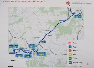 17,5 km wird die Tramstrecke insgesamt lang sein. Bis Ende 2022 soll das erste Finanzierungsgesetz für das Teilstück „Cloche d’Or“-„Quartier Alzette“ vorliegen, das dann noch vor den Wahlen im Oktober 2023 vom Parlament verabschiedet werden soll. Bis 2028 soll der erste Streckenabschnitt fertig sein. Die zweite Bauphase mit u.a. der innerstädtischen Straßenbahn durch Esch soll bis 2035 laufen.