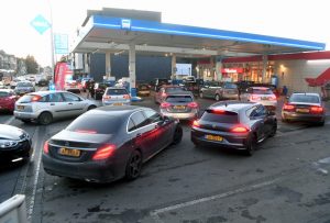 Tatsächlich bilden sich kurz nach Bekanntgabe der Preissteigerung in den Medien vielerorts lange Autoschlangen vor den Tankstellen. Mitarbeiter in Warnwesten dirigieren die wartenden Wagen an die Zapfsäulen und achten darauf, dass der Verkehr nicht beeinträchtigt wird. Währenddessen müssen sich die Fahrer in Geduld üben.