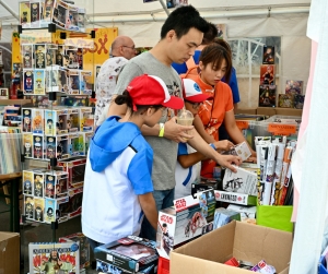 Dazu hatte man auch reichlich Gelegenheit: Es waren mehr Händler anwesend als in den Jahren zuvor. Groß und Klein badeten förmlich in den Comicbänden. In Kisten und Kasten boten die Verkäufer zig tausende Comics aus aller Welt an. Überall wurde gestöbert und gesucht, mit dem Ziel, die hauseigene Sammlung zu vervollständigen.