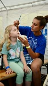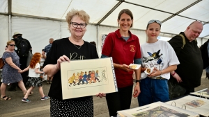 „Petzi“ ist ein dänischer Comic, der 1951 von Carla und Vilhelm Hansen unter dem Namen „Rasmus Klump“ geschaffen wurde. Die Figur ist gerade 70 Jahre alt geworden und hat die Kindheit gleich mehrerer Generationen auf der ganzen Welt geprägt. Seine Geschichten können dabei am ehesten mit einer Art Odyssee für Kinder verglichen werden, die er zusammen mit seinen Freunden auf ihrem gemeinsamen Schiff Mary erlebt. Nicht nur der aktuelle Comiczeichner von „Petzi“ war anwesend. Auch „Petzi“ selbst war persönlich im Dorf unterwegs und wusste die Kinder zu begeistern.