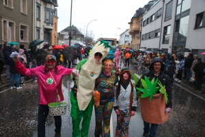 Zwischendurch sorgten Marching Bands für gute Stimmung und zeitweise gelang es ihnen, den Regen zu vertreiben. Die drei Kilometer lange Festzugstrecke endete im Zentrum von Petingen. Nach dem Umzug wurde mit Käpt’n Ändä & Matrous K1000 noch einmal richtig im Partyzelt getanzt und gefeiert.