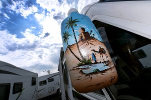 Michel Bouzid reist für sein Leben gerne. Das Gefühl, unterwegs zu sein, treibt ihn an. Wahrscheinlich war die Berufswahl, als Busfahrer Touristen durch die Welt zu kutschieren, unausweichlich. So unausweichlich wie das, was er jetzt macht. Das Wohnmobil, in dem er während der Woche in Longwy lebt, ist mit Wüstenmotiven aus Sand, Kamelen und Oasen verziert. Er hat es gebraucht gekauft und es passt zu ihm. „Ich habe die arabische und die europäische Kultur in mir“, sagt das Kind eines Marokkaners und einer Belgierin. Er selbst hat die französische Staatsbürgerschaft. Seine ersten acht Lebensjahre verbringt er in Fes in Marokko bei den Großeltern, den Rest seiner Jugend lebt er in Brüssel. Nach Marokko zieht es ihn nach seinem Renteneintritt im Juni 2018 zurück.