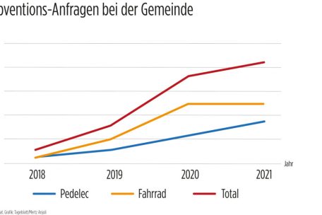 Die Gesamtsumme der Subventionen ist seit dem Ausbruch der Pandemie explodiert. Waren es 2019 noch insgesamt rund 19.000 Euro, so schüttete die Gemeinde im vergangenen Jahr fast 47.500 Euro aus. 31.822 Euro fielen für E-Bikes an, 15.600 Euro für normale Fahrräder. Trotzdem wurden mit 221 gegenüber 168 E-Bikes mehr konventionelle Fahrräder bezuschusst. Die Diskrepanz in der Gesamtsumme kommt natürlich durch die unterschiedliche Höhe der Subventionierung zustande, aber auch durch den vergleichsweise höheren Anschaffungspreis für ein Pedelec, das demnach in den allermeisten Fällen mit dem Maximalbetrag von 200 Euro bezuschusst wird.