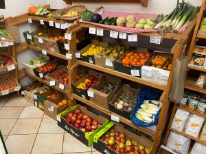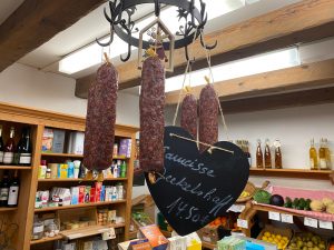 Der Züchter verkauft das Fleisch seiner Tiere im eigenen Hofladen. Dort bietet er noch viele weitere Bioprodukte an, unter anderem Naturkosmetik von der Luxemburgerin Noémie Graas. „Hier ist alles Natur. Mit Ausnahme der Bananen und anderen hier nicht heimischen Obst- und Gemüsesorten kommt alles aus der Gegend“, betont Guy Arend. Der Laden ist freitags von 15.00 bis 18.30 Uhr und samstags von 9.00 bis 12.00 Uhr geöffnet. Beliebt sind neben dem Bio-Obst und Gemüse natürlich die Fleischprodukte des Hofs, darunter die selbst gemachte Wurst.