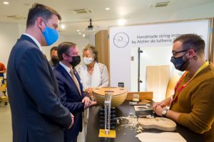 Neben Esch 2022, der „Eppelpress“ oder auch einem Stand mit Kunstglasmalerei wusste vor allem „Usch“ zu überzeugen. Usch, das ist Eugène Biver, ein Hersteller der in Luxemburg durchaus bekannten „Péckvillercher“ – kleine Keramikvögel, die bei richtiger Handhabung Nospelter Nostalgie in Dubai haben erwachen lassen. Usch wusste auch Erbgroßherzog Guillaume in seinen Bann zu ziehen, indem er bei einer Live-Demonstration ein tönernes Vögelchen vor Ort herstellte.