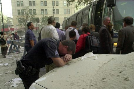10.28 Uhr: Auch der Nordturm des World Trade Centers stürzt ein. Über den Süden Manhattans legt sich eine dicke Schicht aus Schutt und Staub.