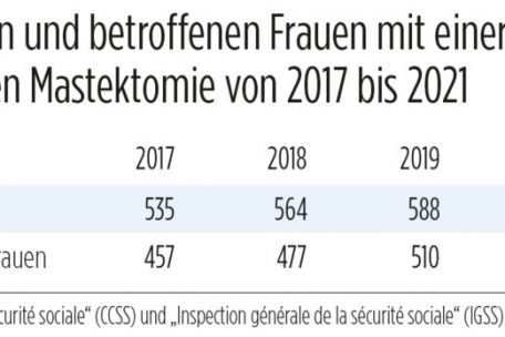 Eine Rekonstruktion der Brust werde laut den beiden Ministern heutzutage sofort oder relativ schnell nach einer Mastektomie vorgenommen. So wurden für 2021 bei der Gesundheitskasse 223 Erstattungen von solchen Eingriffen verzeichnet – bei 137 betroffenen Frauen. Im Jahr 2020 gab es 153 Kostenübernahmen von Brustrekonstruktionen, 2019 insgesamt 140, ein Jahr davor 128, während es 2017 erst 77 waren. Auch hier beziehen sich die Zahlen auf Eingriffe bei Frauen in Zusammenhang mit einer Krebserkrankung.