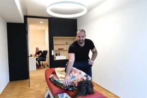 In 1.060 Praxisstunden durften die Freunde aus dem Minette ihr gelerntes Können während der zahlreichen Praktika des Studiums unter Beweis stellen. Nach Abschluss des Bachelors entschlossen beide dann, erste berufliche Erfahrungen in Köln zu sammeln. «Allerdings nicht in derselben Praxis. Ich glaube, das war das erste Mal, dass wir getrennt gearbeitet haben», meint Rick lachend. Zurück in Luxemburg wurden dann Nägel mit Köpfen gemacht und der Grundstein für die «Beweegungsfabréck» war gelegt. «Wir hatten unglaubliches Glück, hier in Belval eröffnen zu können. Das ganze Viertel wächst derzeit enorm und die zentrale Lage des Gebäudes ist für uns optimal», meint Pol zufrieden. Kundschaft konnten die Physiotherapeuten aus Deutschland allerdings keine mit in die neue Praxis bringen: «Wir haben von null angefangen.»