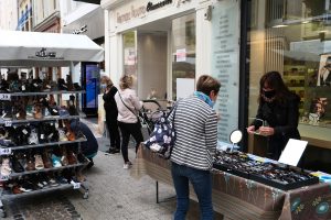 Yannick Speltz, Verantwortlicher des „Olliewood Skateshop“, wollte sich am Morgen noch nicht zu weit aus dem Fenster lehnen: „Es ist noch früh. Vergleicht man jedoch die Anzahl der Passanten mit den Vorjahren, ist es ruhig.“ Es sei eben anders. Essens- und Getränkestände sowie Musik fehlten. Der Stand vor dem Laden fiel dieses Jahr etwas kleiner aus. Das liegt daran, dass die Geschäfte jeweils eine Straßenseite frei lassen mussten, um den Besuchern genügend Platz zu lassen. Speltz bleibt dennoch optimistisch, dass die Verkaufszahlen am Montag gut sein werden. Die Läden der Hauptstadt hatten bereits am Wochenende mit der Braderie begonnen. Für den Skateshop sei das Geschäft am Samstag und Sonntag sehr gut gelaufen. „Rechnet man die drei Tage zusammen, könnten wir den Verlust im Vergleich zu einem ‚Braderie-Tag’ ohne Sicherheitsmaßnahmen ausgleichen“, glaubt er.