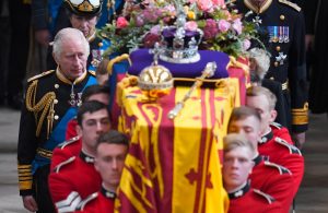 Jede Minute des Trauerzugs erklang ein Salutschuss, auch die berühmte Glocke Big Ben schlug regelmäßig. Etliche Soldaten in Gala-Uniform schritten mit dem Sarg an den Stätten von Elizabeths 70-jähriger Herrschaft wie dem Buckingham-Palast vorbei. Viele Uniformen und das Zeremoniell erinnerten Betrachter an das einstige britische Empire, das während Elizabeths Regentschaft weiter zerbröckelte.