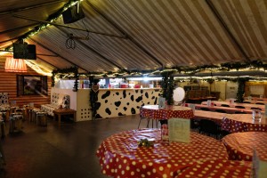 Letzte Woche haben 12 Mann mit dem Aufbau der Zelte begonnen. Morgens um 9 Uhr luden sie das ganze Material im Scoutshome auf den Kleintransporter. Nach dem Wochenmarkt um 14Uhr fingen sie dann mit dem Aufbau an. Anschließen wurde das restliche Material wie Kühlschränke, Kücheninstallationen, Töpfe und die Theke zum Rathausplatz gebracht. „Wir haben alles transportiert, was für die Herstellung von Glühwein benötigt wird, oder auch die Schneidemaschine, die wir für die Sandwiches einsetzen“, erklärt Robert Helfrich, Mitglied des Organisationsteams.