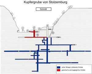 Nach dem Eintauchen in die virtuelle Realität und der Vorführung eines kleinen Dokumentarfilms über die Geschichte des Kupferabbaus in Stolzemburg machen sich die Besucher mit einer Touristenführerin bzw. einem Touristenführer zu Fuß auf den Weg zur eineinhalb Kilometer entfernten Mine. Außerhalb der Mine existiert seit 1998 ebenfalls ein Lehrpfad: Zehn Schautafeln geben Informationen über die Geologie und die Erzförderung.