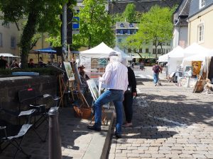Rund 30 Aussteller hatten sich zum Auftakt in die Altstadt begeben – darunter auch Viviane Briscolini, die seit der Geburtsstunde von „Konscht am Gronn“ dabei ist und sich seit Jahren auch aktiv an der Organisation der Ausstellung beteiligt: „Das Ganze existiert seit 13 Jahren. Man kann eigentlich sagen, dass es von Jahr zu Jahr immer besser geworden ist“, erklärte das Vorstandsmitglied.