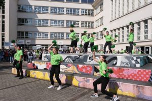 Es ist 10.30 Uhr an diesem Freitag, 9. Juli. Am Donnerstagabend war Diplomüberreichung für die Abschlussklassen. Heute ist letzter Schultag im „Lycée de garçons Esch“ (LGE). Bevor es in die wohlverdienten Ferien geht, soll sich aber noch mit einem Flashmob gebührend verabschiedet werden – und vor allem bedankt! Organisiert haben die Aktion die Schüler und das Theaterensemble „Geoghelli“ mit ihrem Regisseur, dem Deutschlehrer Patrick Engel.