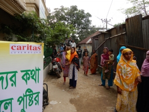 Um mit einem kleinen Schritt zu zeigen, wie die aktuelle direkte Not leicht gelindert werden kann, hat die Caritas aus Luxemburg in einem Vorort von Dhaka seit einigen Jahren ein Projekt am Laufen: eine Tagesbetreuung für die Kinder von arbeitenden Müttern.