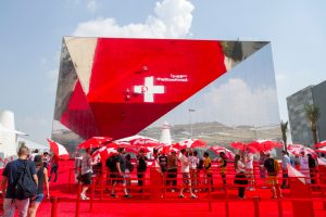 Die ersten Schritte in den Pavillon bleiben dennoch in Erinnerung. 30 Grad Celsius sind für Wüstenverhältnisse kühl – den Luxemburger Besucher, der bei sieben Grad am Findel losgeflogen ist, trifft die Kältewand im klimatisierten Pavillon mit aller Wucht. „Der Pavillon ist beeindruckend und überzeugt durch seine Vielfalt“, sagt Tourismusminister Lex Delles der Presse. „Die 70 Gesichter ziehen einen regelrecht in den Pavillon hinein.“ Tatsächlich schmücken 70 Bürger aus Luxemburg die linke Wand der sich windenden Spiralkonstruktion, die den Besucher in den Pavillon hineinführt. Jede Person soll in ihrer Einzigartigkeit die Vielfalt des Landes widerspiegeln, so die Überlegung der künstlichen Leiter.